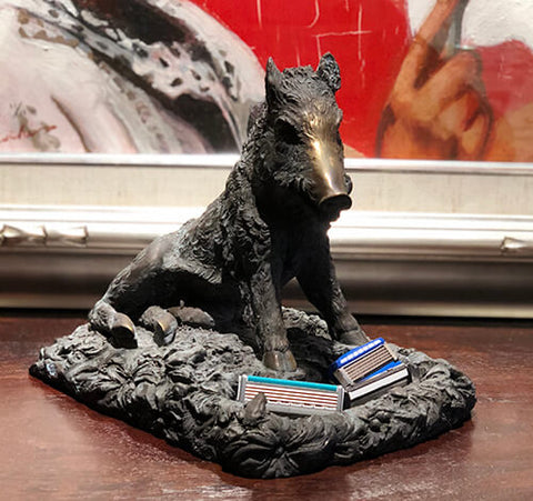 この写真のイノシシですが、以前フィレンツェに渡航した際に購入した真鍮製の像です。