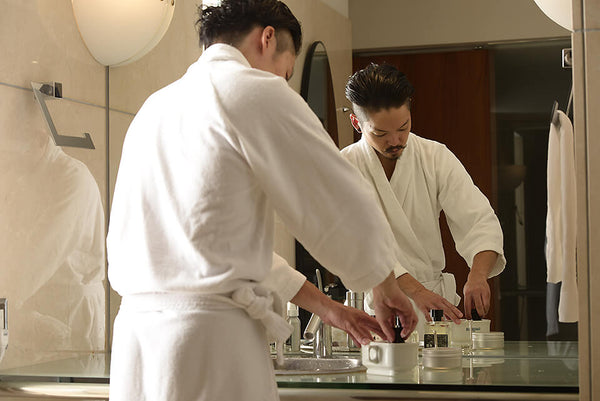 ウェットシェービングは起床してすぐに行うのではなく、コップ一杯の水を飲み体全体に水分を与えてあげてから(起きてから20分位後がベスト)行うのがおすすめです。