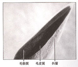 皮膚は、薄い表皮とその下の厚い真皮の二層から構成されており、毛根は真皮の中にあります。